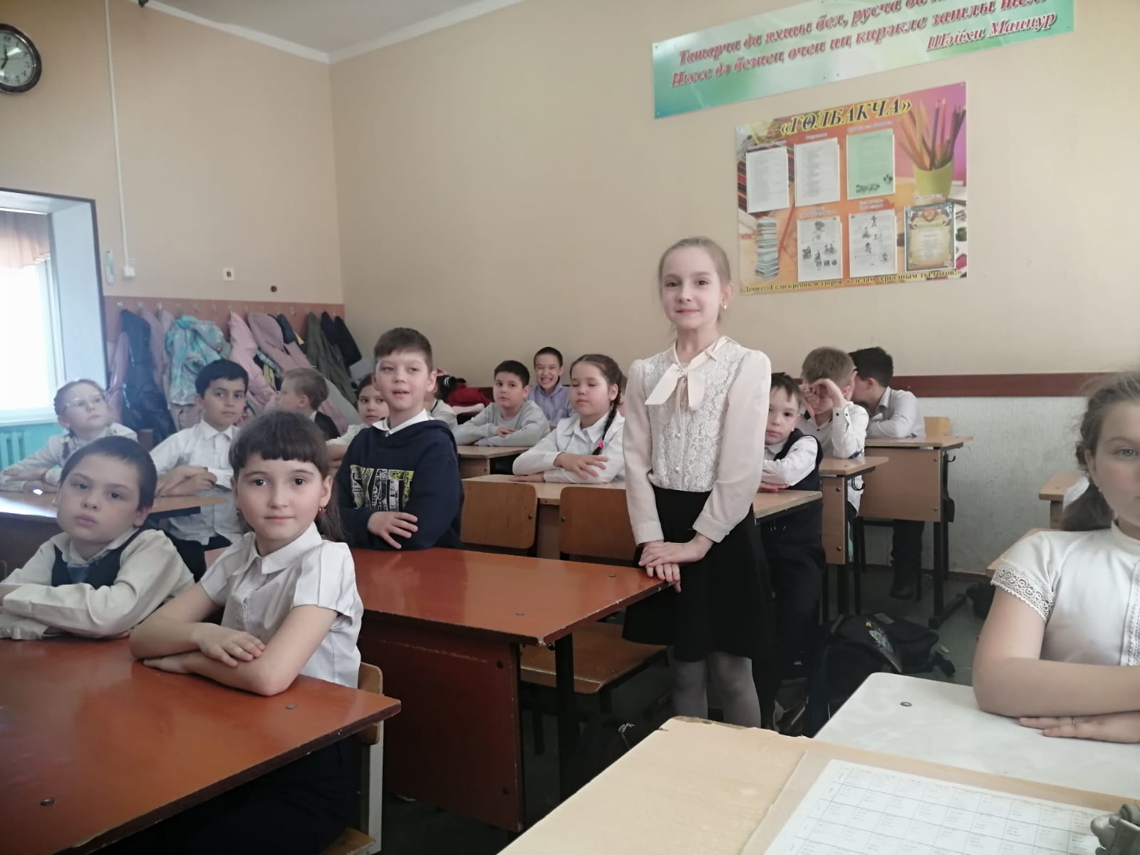 26 апрель көнне мәктәбебездә Габдулла Тукайның тууына 136 ел тулу уңаеннан 6 в сыйныфы укучылары катнашында класс сәгате узды. Туган тел һәм әдәбияты укытучысы, сыйныф җитәкчесе Әшрәпова Г.М. шагыйрьнең биографиясе белән таныштырды, укучылар тарафыннан Г.Тукай шигырьләре укылды. Бөек шагыйребез әсәрләреннән торган китап күргәзмәсе, аның шигырьләре һәм әкиятләренә нигезләнеп ясалган рәсемнәр класс сәгатен тагын да тулыландырды.