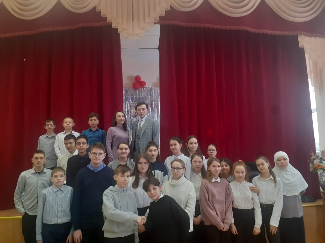 В рамках месячника духовно-нравственного воспитания и в преддверии Международного дня театра, который отмечается 27 марта, в 7а классе прошёл классный час "Весь мир -театр". Гостями мероприятия стали ведущие актёры Альметьевского татарского государственного драматического театра: номинант "Золотая маска" в номинации "Лучшая женская роль" Ляйсан Загидуллина и нынешний номинант на Республиканскую театральную премию "Тантана" в номинации "Лучшая мужская роль" Айрат Мифтахов. Гости рассказали ребятам, кто такой актёр, как они выбрали эту профессию. Показали мастер-класс по актёрскому мастерству. Ребята окунулись в мир театра! Красота и искусство спасёт мир!