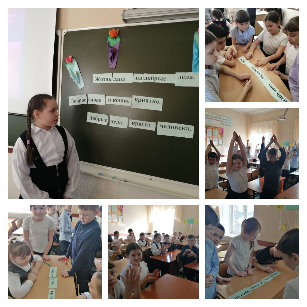 16.03 во 2а классе прошёл классный час на тему «Учимся быть добрыми». Целью данного мероприятия было формирование представлений о добре, зле и нравственной ответственности; способствование развитию сочувствия, сопереживания. В ходе классного часа дети посмотрели мультфильм «Цветик-семицветик», читали стихи о доброте, рисовали, выполняли творческое задание «Доброе дело». Завершился классный час вручением детей друг другу сердечек из бумаги.
