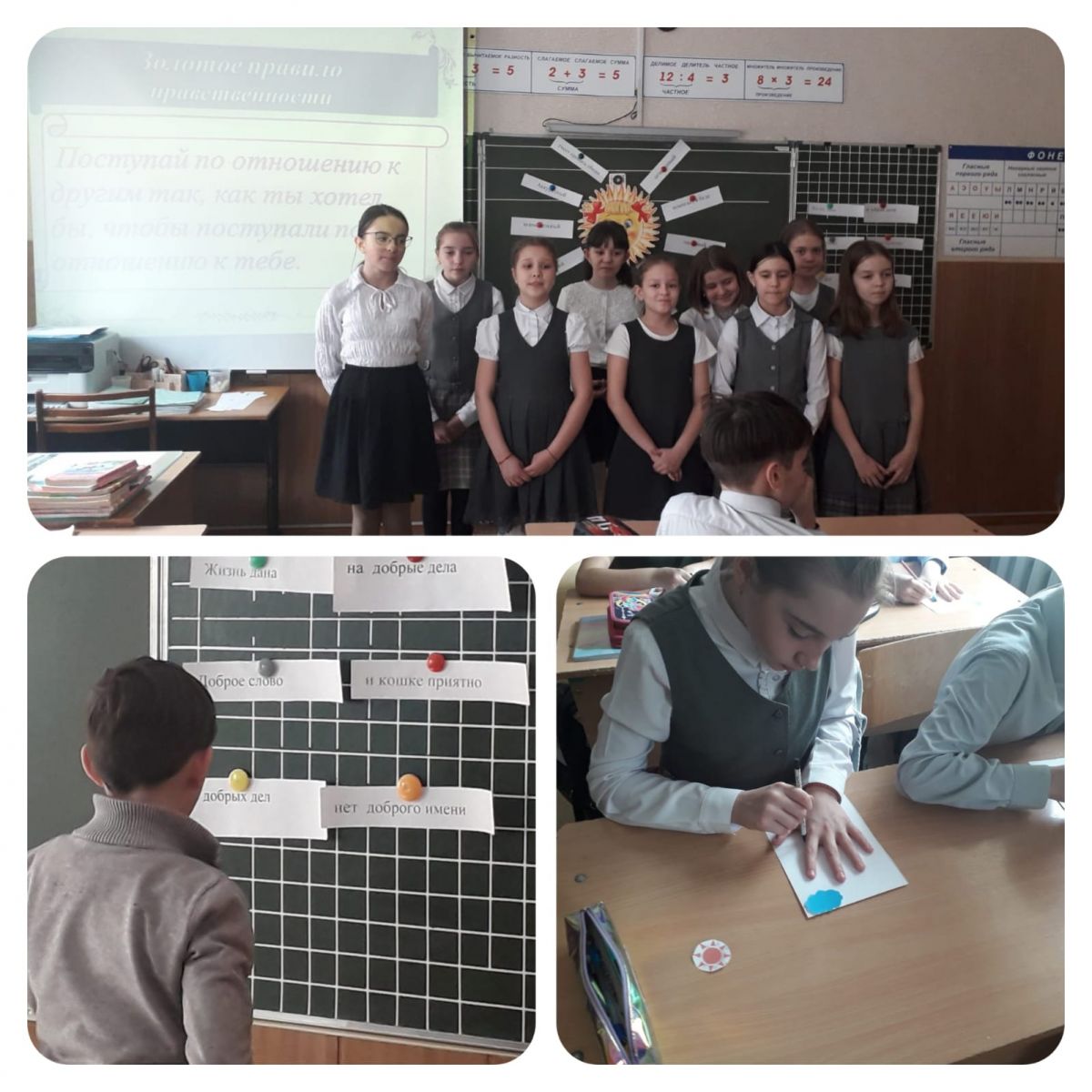 Сегодня в 4а классе прошел классный час на тему ,,Золотое правило нравственности".Дети в ходе игр анализировали собственное поведение и поступки.Учились высказывать свои мысли и работать в группах.