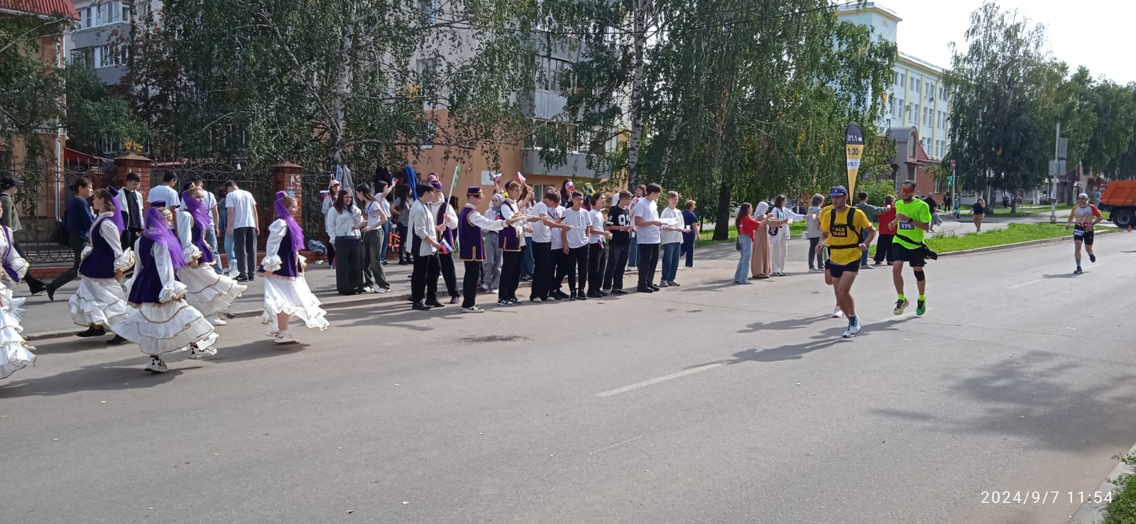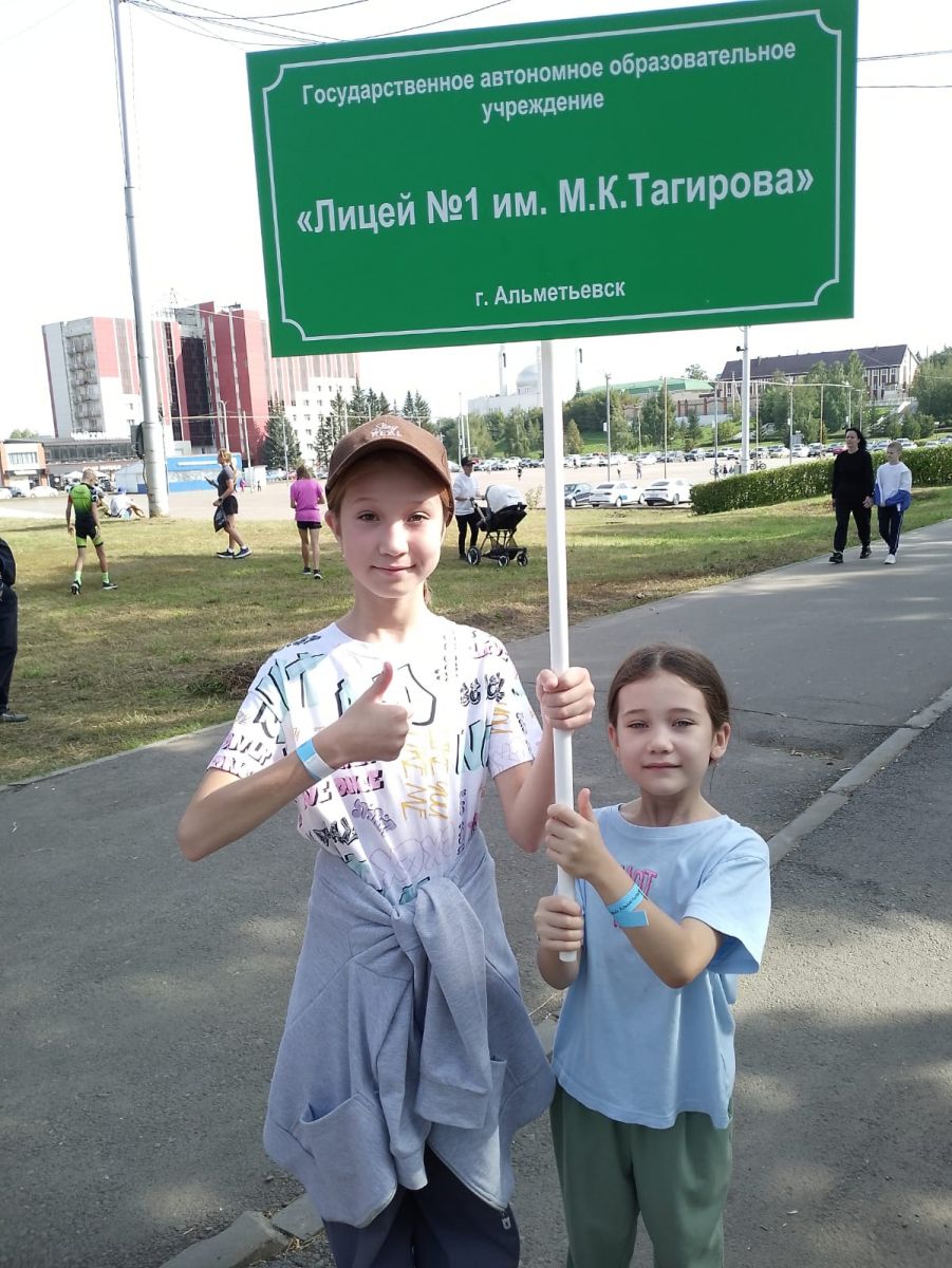 Полумарафон «Бежим за счастьем» 7 сентября 2024года в Альметьевске прошел ежегодный, самый музыкальный старт года — Альметьевский полумарафон «Бежим за счастьем». Он отличается большим количеством музыкальных точек по всей дистанции. Наш лицей не остался в стороне. 159 обучающихся лицея им. М.К.Тагирова приняли участие в данном мероприятии и пробежали свою «Милю Счастья». А ребята из группы поддержки нашего лицея шумовой точкой, татарским национальным танцем подбадривали атлетов на дистанции. Точка питания встречала всех участников полумарафона национальным татарским угощением – баурсак и канапе на шпажках. Питьевая точка пользовалась не меньшей популярностью. Группе поддержки удалось раздать атлетам 25 литров воды (в стаканчиках).