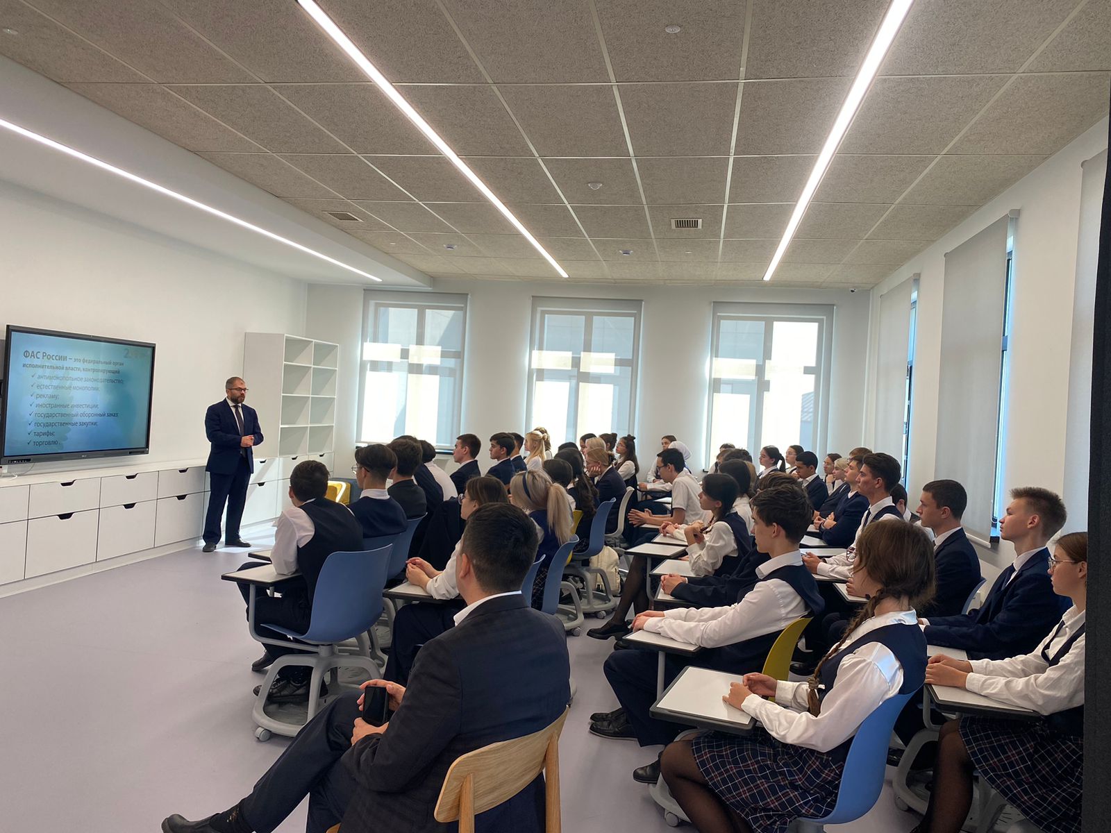 17.09.2024 прошла лекция на тему: «Антимонопольная служба. Чем она занимается и как может быть полезна потребителю?». Лекцию провёл заместитель руководителя Татарстанского УФАС России-Розенталь Андрей Николаевич. Учащиеся 10-11 класса смогли задать интересующие их вопросы в данной теме.