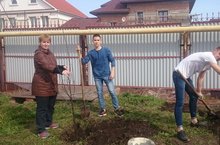 Активисты РДШ вместе с родителями и учителями, посадили на территории школы саженцы декоративных яблонь.