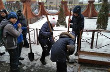 Активисты РДШ вышли на экологический субботник. В этот день к ним присоедились и члены Совета Отцов.