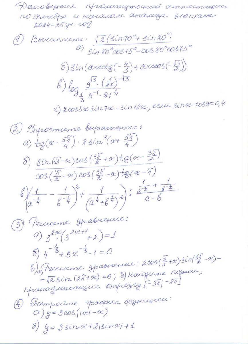 Демоверсии работ промежуточной аттестации на 2024 - 2025 учебный год