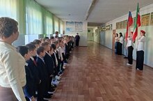 Традиционно новую неделю учащиеся МБОУ "СОШ 11" начали с еженедельной линейки по выносу флага Российской Федерации и Республики Татарстан и исполнения гимна РФ и РТ. Сегодня, 14 октября, на линейке присутствуют учащиеся первых классов, советник директора по воспитанию и взаимодействию с детьми общественными объединениями.