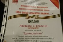 Поздравляем наших обучающихся с Победным участием в Муниципальном фестивале военно-патриотической песни "Мы этой памяти верны."