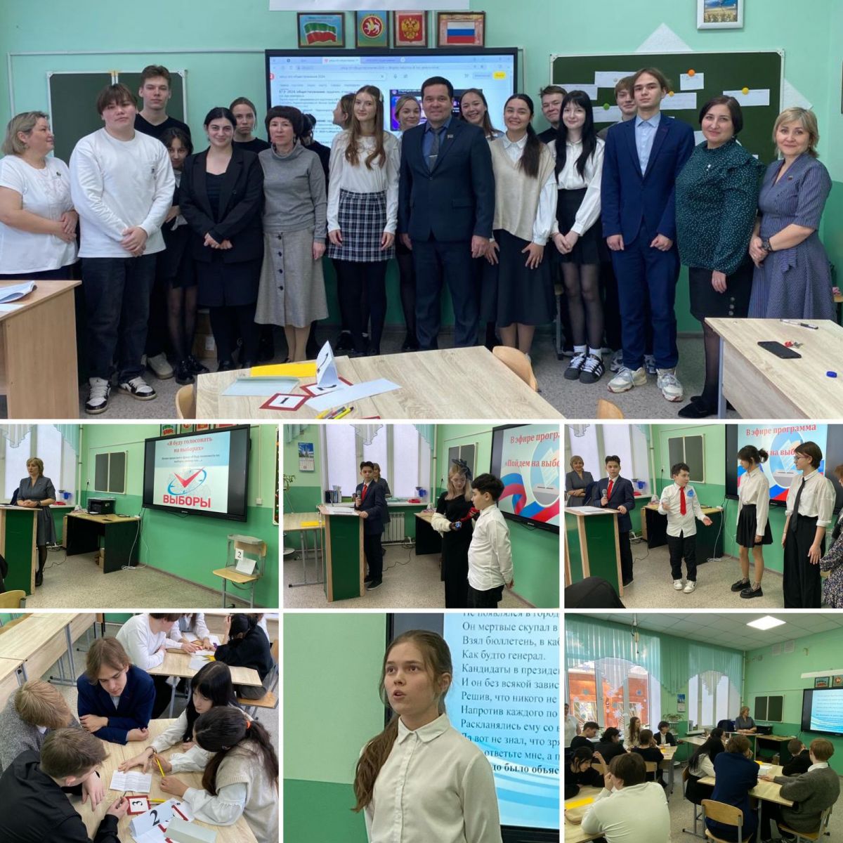 Подготовила и провела урок учитель истории и обществознания Асылова АГ, Илалтдинова ЭИ, учитель русского языка и литературы Кадомцева МВ.Илалтдинова ЭИ напомнила, что свободные выборы в демократических государствах являются неотъемлемой частью в механизме непосредственного народовластия, связанного с процедурой формирования и обновления состава органов публичной власти. Именно через проведение выборов население нашей страны участвует в осуществлении государственной власти, реализуя при этом избирательное право, закрепленное в Конституции Российской Федерации. Учащиеся при помощи сценок, стихов повторили на уроке основные законы и иные нормативные правовые акты, регулирующие отношения, связанные с осуществлением избирательных прав граждан, в игровой форме вспомнили активное и пассивное избирательное право, принципы избирательного права, стадии избирательного процесса, избирательные системы.