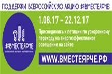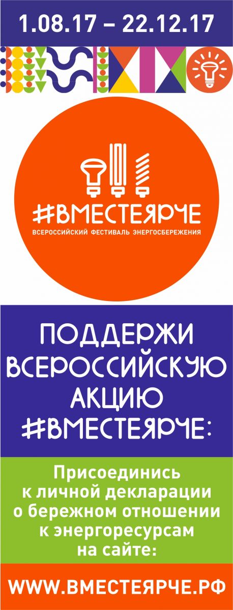 С 1.08.17 по 22.12.17 проводится Всероссийский фестиваль энергосбережения. Поддержим Всероссийскую акцию #ВМЕСТЕЯРЧЕ на сайте www.ВМЕСТЕЯРЧЕ.РФ