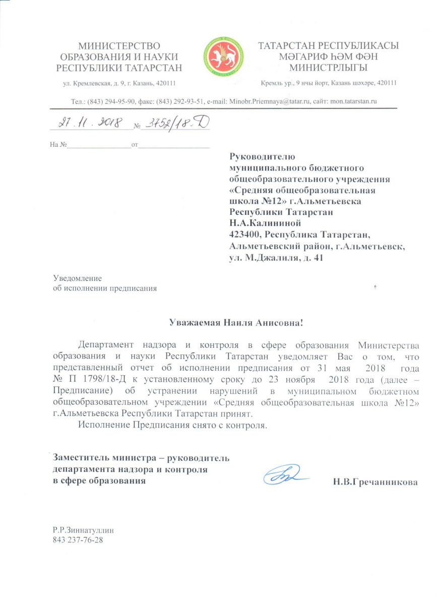 Муниципальное бюджетное общеобразовательное учреждение «Средняя общеобразовательная школа №12» г.Альметьевска Республики Татарстан
