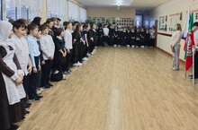 Утро 22 декабря началось с традиционной линейки, выноса флагов и исполнения гимнов РФ и Татарстана под руководством советника директора по воспитанию Латифуллиной Р.Ф. и педагога-организатора Садертдиновой А.З.