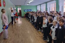 Утро 17 марта началось с традиционной линейки, выноса флагов и исполнения гимнов РФ и Татарстана под руководством советника директора по воспитанию Латифуллиной Р.Ф. и педагога-организатора Садертдиновой А.З.