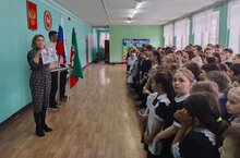 Утро 6 апреля началось с традиционной линейки, выноса флагов и исполнения гимнов РФ и Татарстана под руководством советника директора по воспитанию Латифуллиной Р.Ф. и педагога-организатора Садертдиновой А.З.