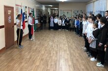 Еженедельная линейка с выносом флагов РФ,РТ. Подведены итоги прошлой недели, намечены цели и мероприятия на новую учебную неделю 02.12.2024