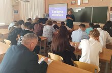 Сегодня ученики нашей школы, родители и учителя приняли участие в акции "Татарча диктант". Мероприятие началось с приветственного слова организатора, учителя родного языка Гариповой А.Ш.., которая рассказала о важности грамотности и сохранения татарского языка.