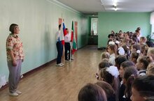 Еженедельная линейка, посвящённая выносу флагов РФ и Татарстана, прослушивание гимнов. 16.09.2024