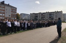 Еженедельная линейка, посвящённая церемонии поднятия флага и исполнению гимна Российской Федерации. 09.10.2023