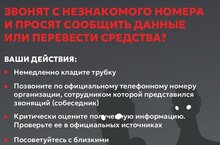 Звонят с незнакомого номера и просят данные или деньги? СТОП! ⚠ Банк России и Генеральная прокуратура РФ предупреждают: участились случаи мошеннических звонков! Если вам звонят с незнакомого номера и просят: ⁃ Сообщить данные карты, пароли, коды из СМС. ⁃ Перевести деньги "для безопасности счета", "из-за проблем с законом", "родственнику в беде". ⁃ Скачать приложение для "защиты" или "проверки". #Ваши_действия ДОЛЖНЫ быть такими: 1. Немедленно положите трубку!Не вступайте в диалог. 2. НЕ ПЕРЕЗВАНИВАЙТЕ!Наберите официальный телефон организации, сотрудником которой представился звонящий (найдите на ее официальном сайте или в официальном приложении). Уточните информацию. 3. Проверьте! Критически оцените услышанное. Ищите подтверждение в официальных источниках (сайт организации, госуслуги, новостные ленты). 4. Посоветуйтесь! Расскажите о звонке близким или знакомым. Свежий взгляд поможет увидеть подвох. #Помните ⁃ Настоящие сотрудники банка или госорганов #НИКОГДА не просят конфиденциальные данные или переводы по телефону. ⁃ Мошенники мастерски создают ощущение срочности и паники. Не поддавайтесь! ⁃ Делитесь этой информацией, особенно с пожилыми родственниками! Они часто становятся мишенью. Будьте бдительны! Защитите себя и своих близких! #Безопасность #Мошенничество #БанкРоссии #Генпрокуратура #ФинансоваяГрамотность #ОсторожноЗвонок #ЗащитаДанных #Предупреждение 15.08.2025