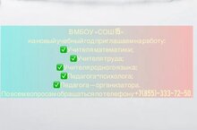 В МБОУ «СОШ 15» на новый учебный год приглашаем на работу: ✅Учителя математики; ✅Учителя труда; ✅Учителя родного языка; ✅Педагога-психолога; ✅Педагога—организатора. По всем вопросам обращаться по телефону +7(855)-333-72-50 15.07.2025
