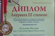 В субботу в Казани проходил международный конкурс, где участвовали наши ученики Кузьмин Матвей и Валиева Ляйля со Смолькиной Ириной Николаевной - результат радует - 2 первых места и 1 второе. Молодцы!!! Поздравляем!!!