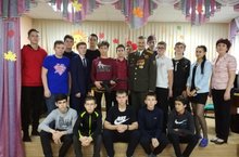 Юноши 9 классов школы в ПК "Ракета", где для ребят провели лекцию , посвящённую 100-летию со дня рождения Калашникова М.Т.