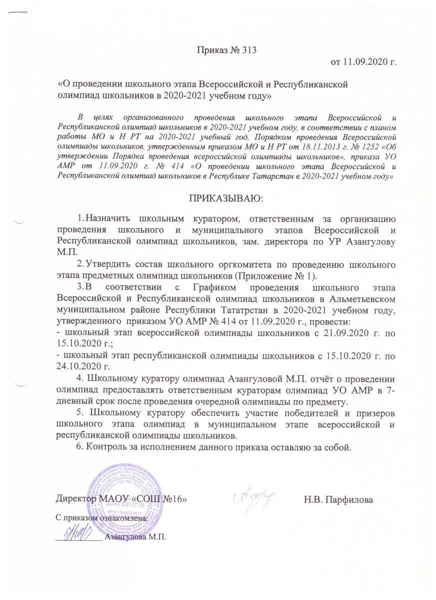 - Приказ УО о проведении школьного этапа 20-21уч.г.