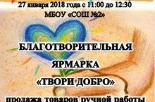 27 января 2018г. состоялась благотворительная ярмарка "Твори добро" с участием учащихся 1-11 классов и родителей.