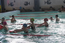 С 25 апреля в рамках проекта « Всеобуч по плаванию» учащиеся нашей школы начали посещать занятия по плаванию при МАОУ « СОШ №16».