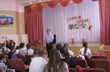 В актовом зале школы прошла встреча учащихся 5-6х классов с ликвидатором аварии на ЧАЭС Гудаковым А.М.