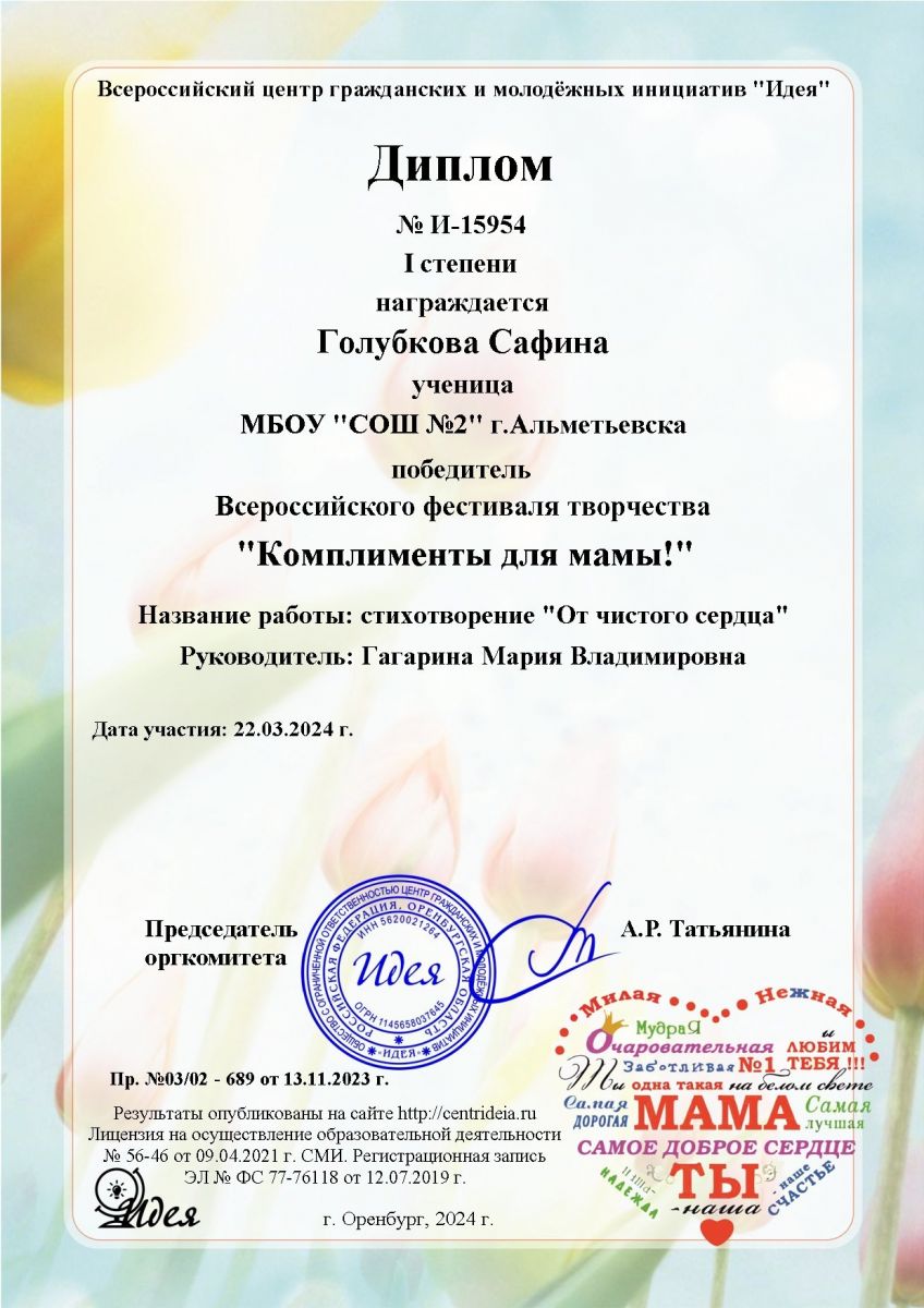муниципальное бюджетное общеобразовательное учреждение «Средняя общеобразовательная школа №2» г. Альметьевска Республики Татарстан