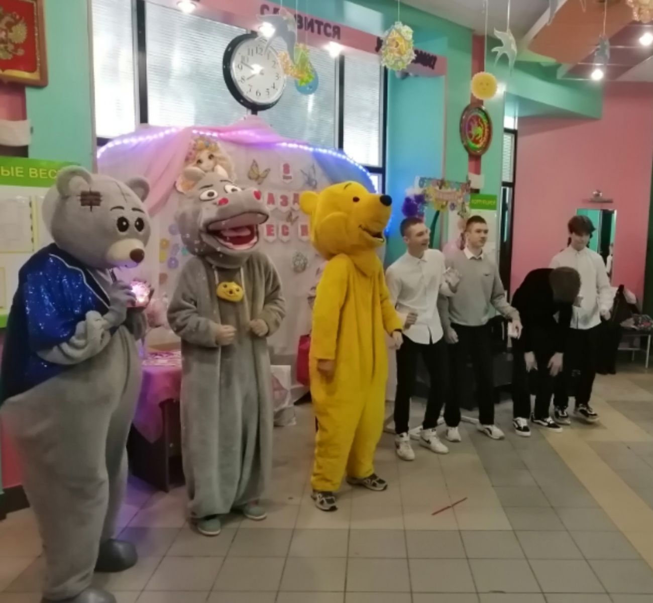 Школьный медиацентр на фоне фотозоны провели фотосессию для педагогов и детей