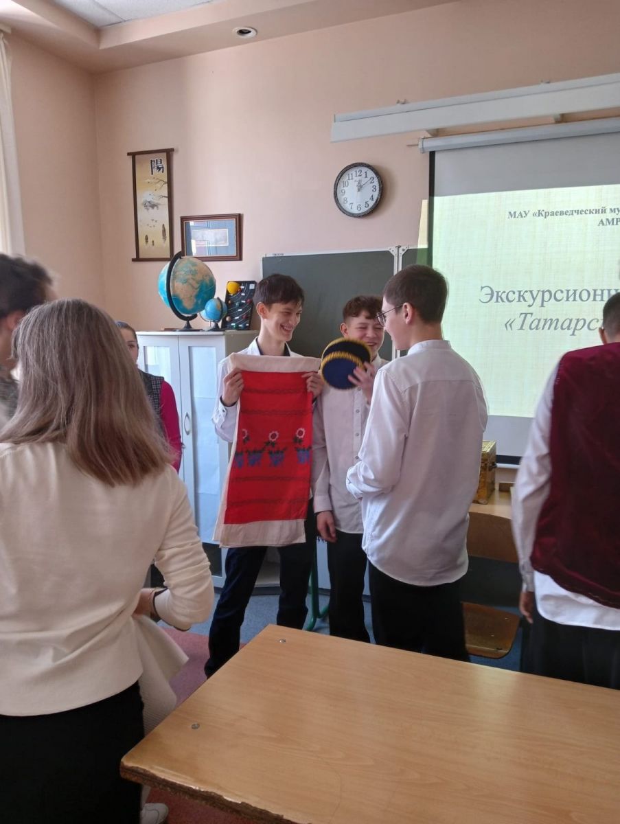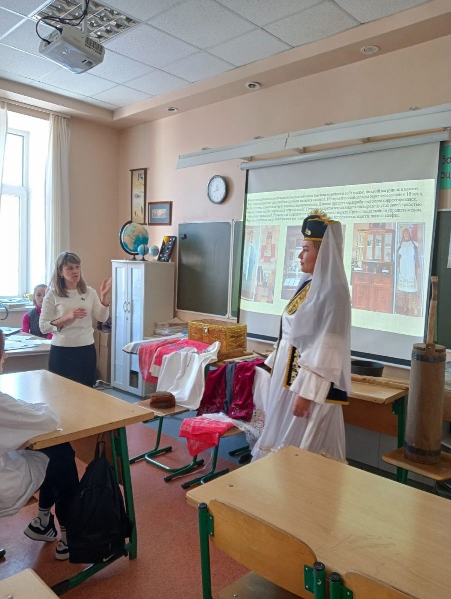 В честь праздника и Года семьи в нашей школе ,заместителем директора по УР Фархутдиновой Лилией Насиховной,в рамках проекта "Пушкинская карта" был организован музейный урок " Татарская изба" для учащихся 8 классов ,который провели сотрудники Абдрахмановского краеведческого музея -