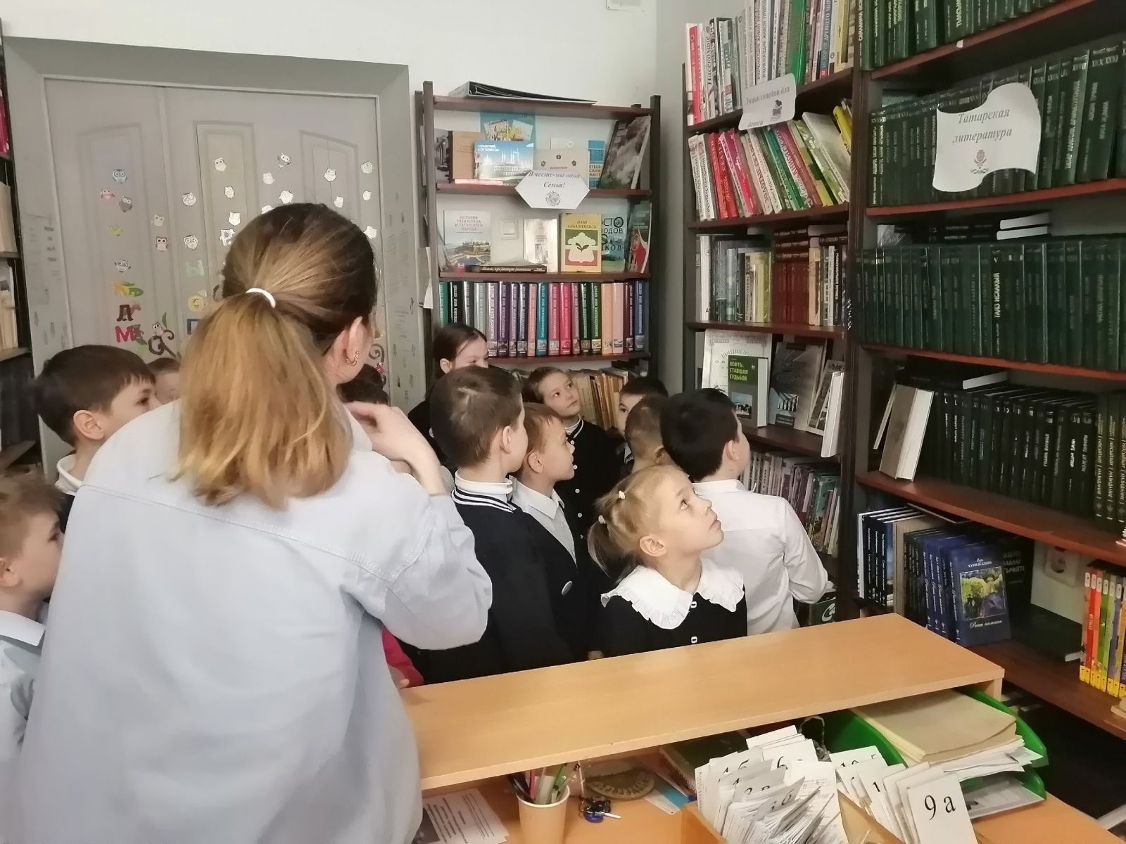 Библиотекарь, Лилия Булатовна, провела для учеников первый библиотечный урок. На уроке ребята узнали, об истории библиотеки, как устроен библиотечный фонд, правило записи в библиотеку, правило поведения и обращения с книгами.