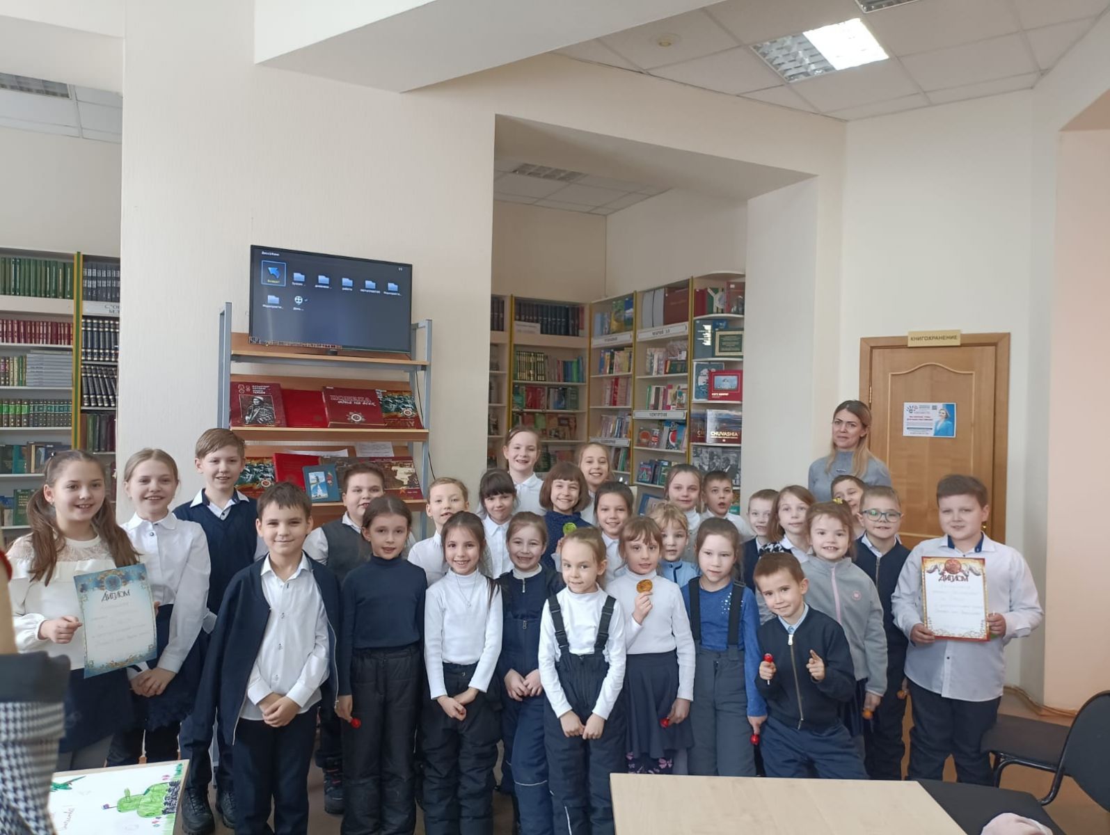 Ученики 1в и 3а в рамках плана гражданско патриотического воспитания посетили городскую библиотеку филиал #2, где приняли участие в викторине ко Дню Защитника Отечества