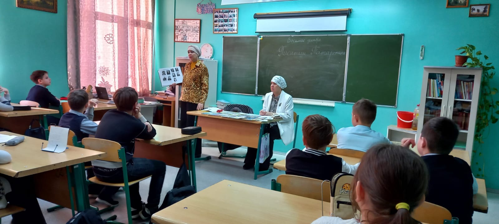 В рамках патриотического воспитания молодого поколения на уроке родной русской литературы учитель родного русского языка Чёрных Людмила Викторовна провела урок- встречу с писателями родного края. Гостями в 5в классе были детские писатели Лилия Фархутдинова и Резеда Фархутдинова, члены Союза писателей Республики Татарстан, лауреаты премии имени Р.Тухватуллина. Они ознакомили учащихся с 60летней историей Альметьевского отделения Союза писателей Республики Татарстан, рассказали о писателях и поэтах, живущих в Альметьевсе, прочитали свои произведения.