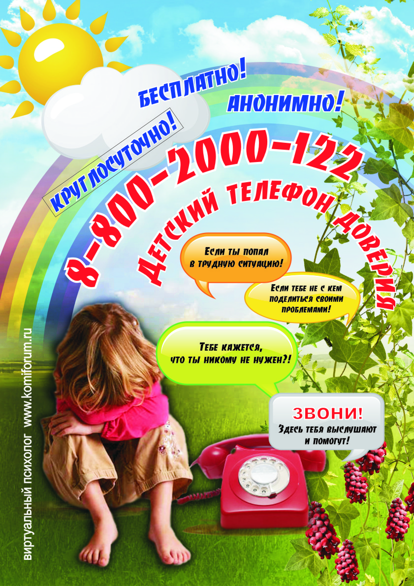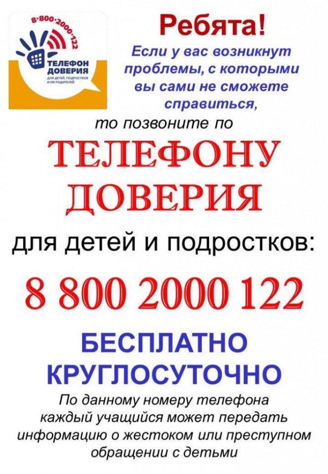 Единый общероссийский детский телефон доверия 8-800-2000-122