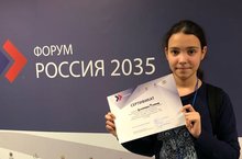 В связи с необходимостью проведения широкого общественного обсуждения стратегии социально-экономического развития Российской Федерации до 2035 года, в том числе среди молодых граждан нашей страны, Советом Федерации Федерального Собрания РФ совместно с Российским экономическим университетом им.Г.В.Плеханова был проведен конкурс молодежных проектов «Россия-2035», защита которых состоялась в г.Москве на Форуме «Россия, устремленная в будущее». Молодые граждане из 83 субъектов РФ – победители заочного этапа конкурса получили возможность лично представить свои идеи. Ученица 6 «Б» класса МБОУ «СОШ №24» г.Альметьевска, Дылева Полина (учитель: Ягафарова Олеся Михайловна), приняла участие в данном Форуме, достойно защитив свой проект.