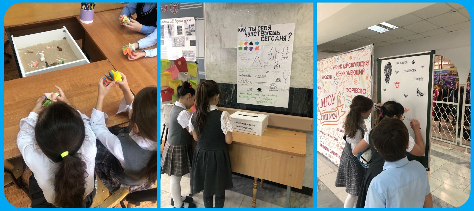 С 20 по 24 ноября в СОШ 24 проводились мероприятия в рамках традиционной «Недели психологии». В мероприятиях «Недели психологии» имели возможность принять участие все участники образовательного процесса. Педагог-психолог провела для педагогов упражнение «Зоопарк», с учениками начальной школы сделали из оригами «Антистресс», рисовали, играли, делились своими эмоциями и многое другое.