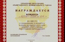 Команда школы №24 в составе Евдокимова А.Г., Ахатова Р.М., Белоногова С.М., Идрисовой А.А., Васенькиной О.А., Зотовой Т.Н., Бикмухаметовой Р.А. заняли II место в соревнованиях по волейболу в рамках муниципального этапа Зимней Спартакиады Работников Образования.