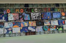 Среди учащихся нашей школы прошел конкурс рисунков, посвященному знаменательной дате 55-летие со дня полета Юрия Гагарина в космос. Из лучших рисунков в фойе первого этажа была организована выставка под названием "Космос без границ"