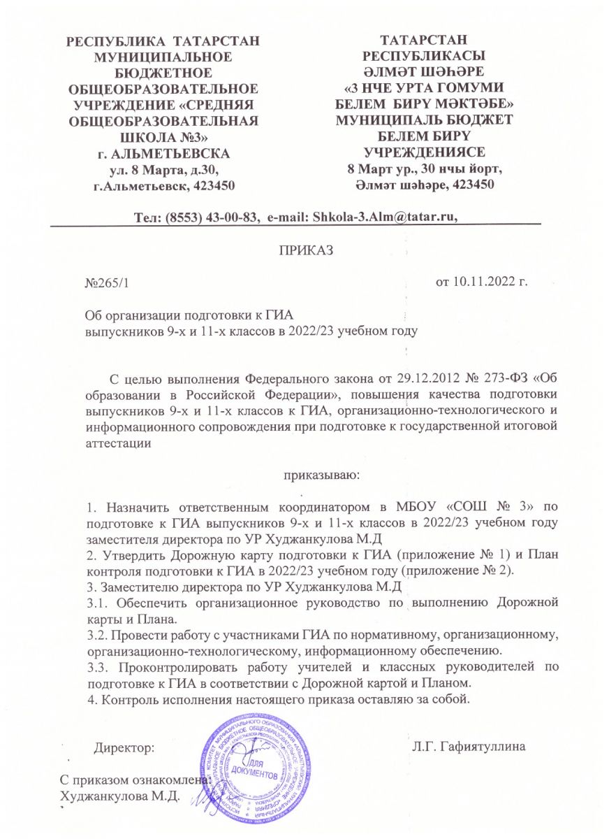 Приказ МБОУ СОШ №3 Об организации подготовки