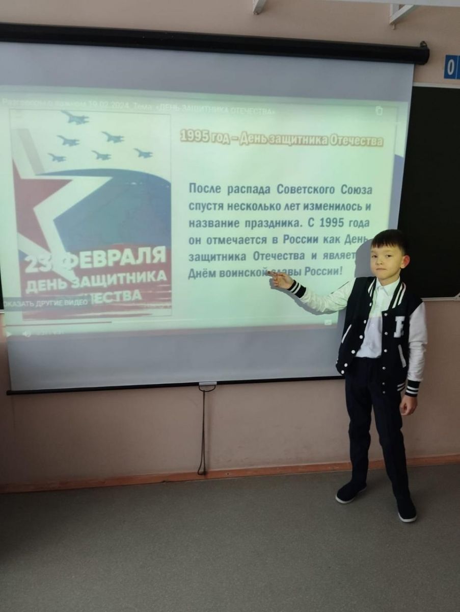Опубликовано: 19.02.2024В преддверии праздника, 19 февраля 2024 года, еженедельное внеурочное занятие "Разговоры о важном" было посвящено Дню защитника Отечества.