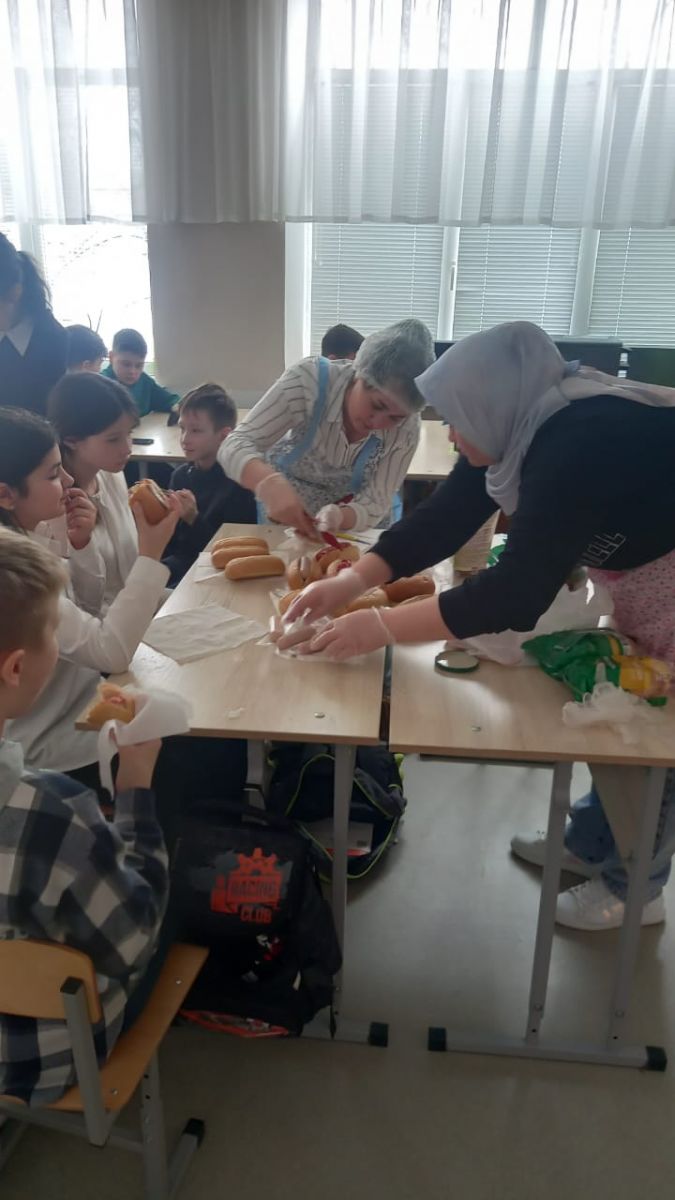 Опубликовано: 11.03.2024 Проверить работает ли эта "формула счастья" решили ребята 2а класса. Во 2-а классе прошел мастер класс по приготовлению хот-догов, его провела председатель родительского комитата класса (мама). Дети с азартом включились в процесс .Время пролетело незаметно.