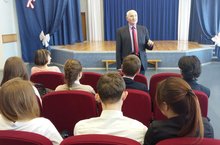 Сегодня в нашей школе прошел Урок мужества "Офицер – профессия героическая", который провел офицер запаса Кавылин Андрей Витальевич с учениками 9 и 11 классов. В беседе обсуждали вопрос о будущей профессии, а именно о военной. "Профессия офицера – это педагогическая профессия. Ежегодно для военной службы в подразделения приходят 18-летние мальчишки. Их необходимо обучить военной специальности и привить им соответствующие психологические качества. Эту задачу исполняет офицер. Он - педагог, он — воспитатель. Труд не простой, но благодарный. Если угодно, армия - это своеобразный военный университет", - прокомментировал Андрей Витальевич. Так же он рассказал о Военных профессиональных образовательных организациях Министерства Обороны Российской Федерации.