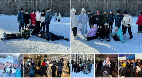 Катание на коньках и ледянках: Настоящий зимний восторг! Некоторые впервые встали на лёд, но быстро освоились благодаря поддержке друзей.