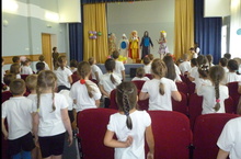 Просмотр спектакля – яркого современного музыкального представления на знакомый всем детям сюжет тукаевской сказки – омрачался нарастающим шумом и беготнёй ребят младших классов. Ученики нашей школы вели себя очень достойно, внимательно наблюдали за действием, выгодно отличаясь, таким образом, от жующих и шуршащих ребят из других школ.