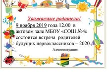 РОДИТЕЛЬСКОЕ СОБРАНИЕ ДЛЯ БУДУЩИХ ПЕРВОКЛАССНИКОВ. 08.11.2019