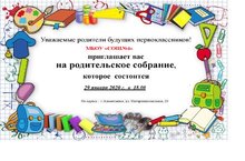 РОДИТЕЛЬСКОЕ СОБРАНИЕ ДЛЯ БУДУЩИХ ПЕРВОКЛАССНИКОВ 29 января в 18.00 27.01.2020