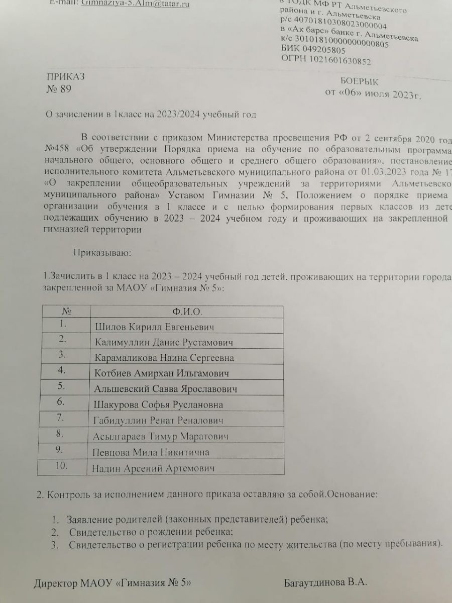 - Приказ о зачислении в первый класс от 06.07.2023 06.07.2023