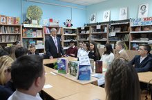 Праздник продолжился в школьной библиотеке,где Хафизовой Гульназ Сабирьяновной была создана праздничная атмосфера.Выставка о творчестве писателей Альметьевска привлекла особое внимание. В рамках акции “ Писатель дает урок” был проведен круглый стол “ Уйларым туган якта” с участием писателя-журналиста Салахова Асхата Сахаповича для учащихся 7-9 классов.Мероприятие вела Нагимуллина Эльвина Ахматфатиховна. Наш гость познакомил со своим творчеством, с деятельностью писателей Альметьевска.Учащиеся сделали краткий обзор творчества Асхата Салахова, выразили свои мнения ,задавали интересующие вопросы.Круглый стол прошел на одном дыхании.И учащиеся, и учителя,и наш гость остались довольны.